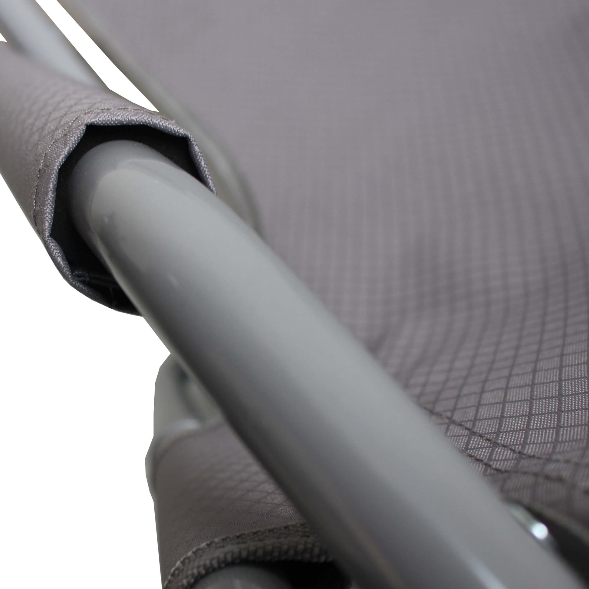 Das Gestell aus Aluminium ist leicht und dennoch sehr stabil. Die pulverbeschichtete Oberfläche macht das Gestell vollkommen witterungsbeständig. Für den nötigen Komfort sind die Armlehnen bei diesem Modell zusätzlich gepolstert.
