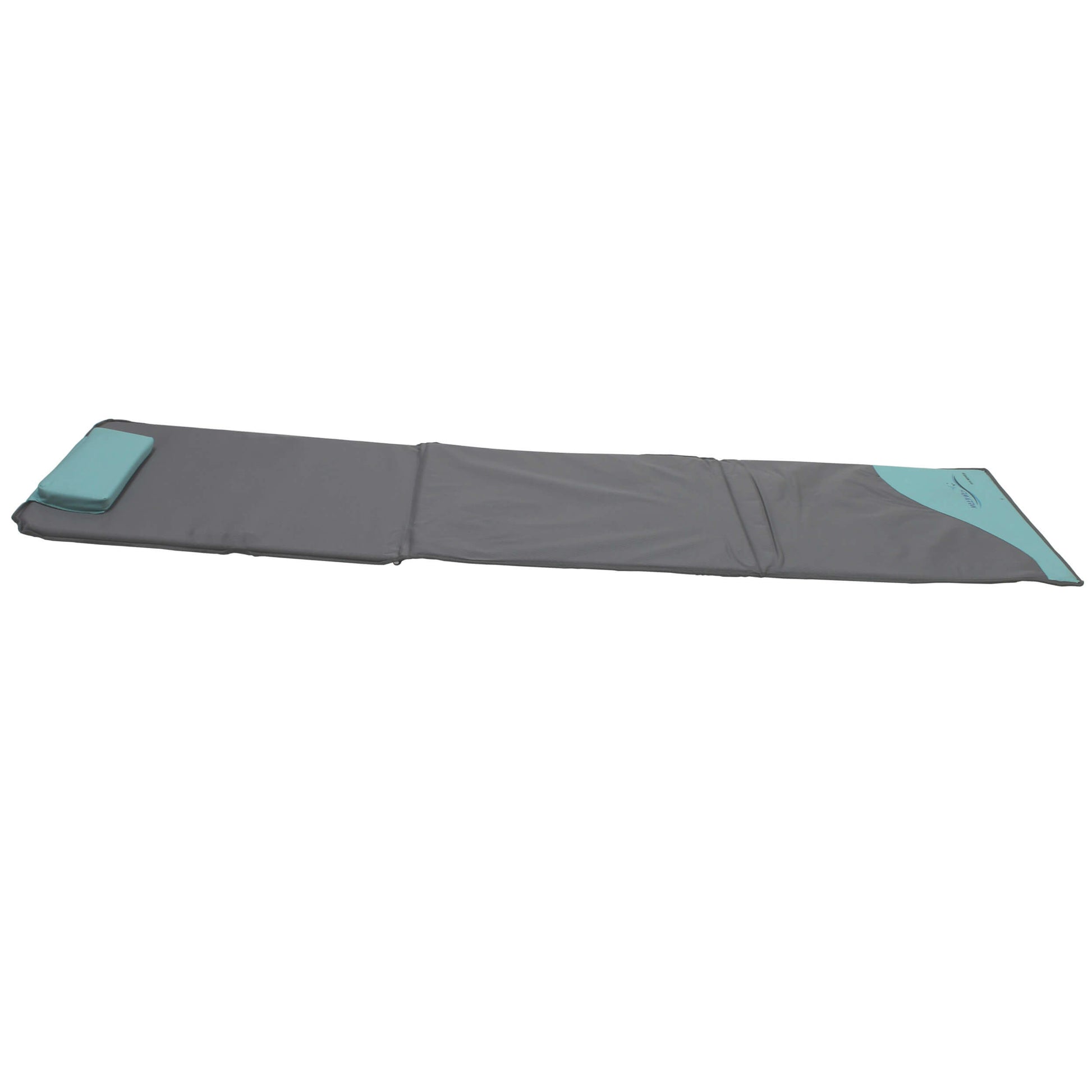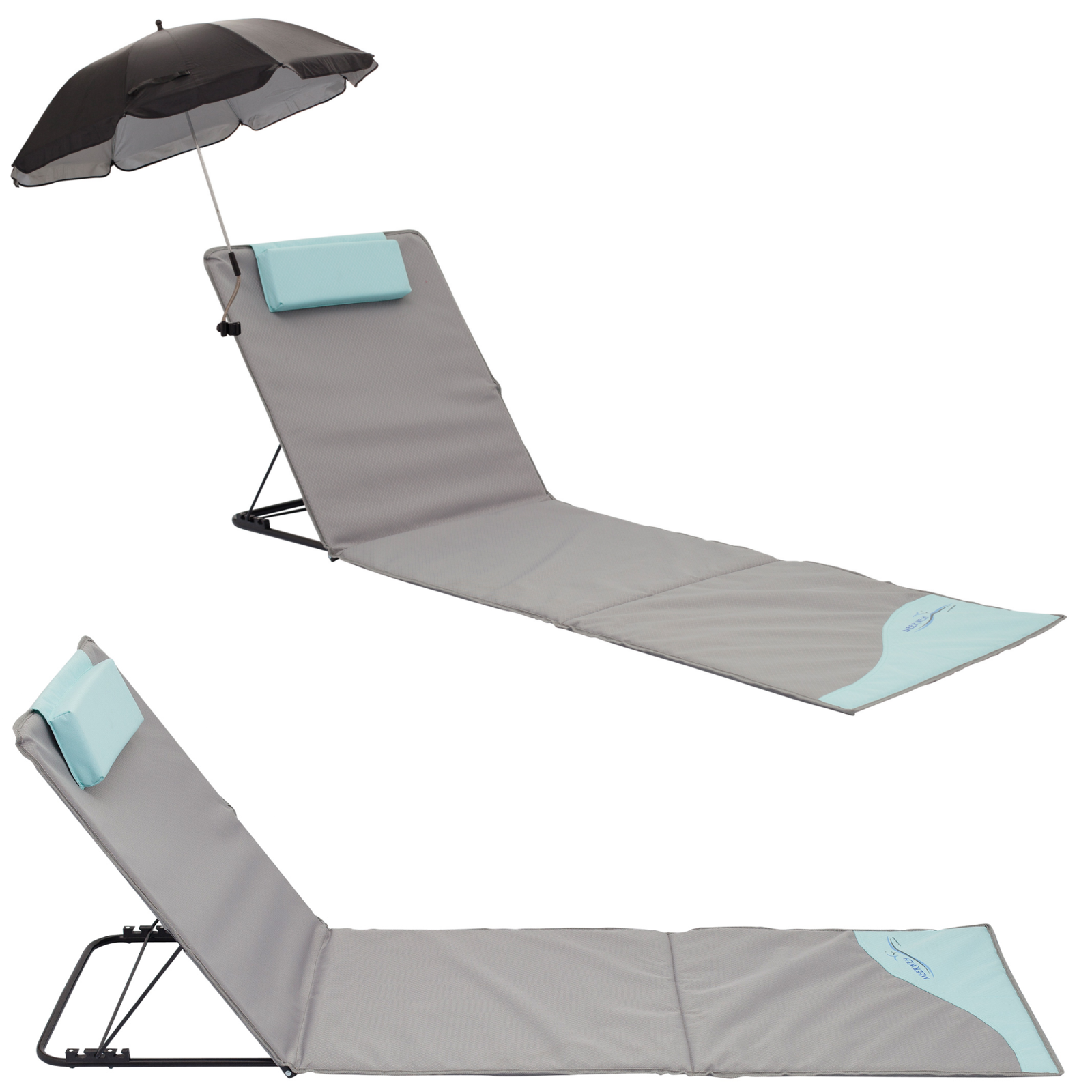 Strandmatte XXL mit Schirm, gepolstert, 200 x 60 cm, mit Rückenlehne, faltbar, grau blau